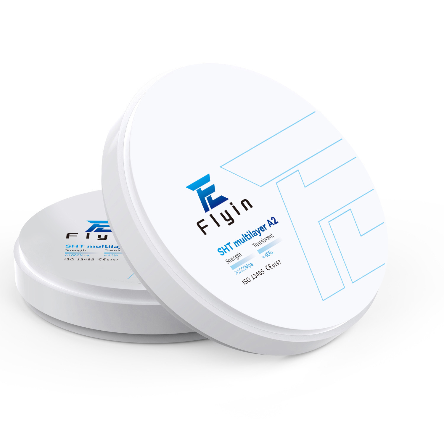 Flyin SHT multilayer has high strength and high translucency, one of the best selling products series in the company, the material can be applied to coping , coping bridge, crown, all kinds of bridges. Suitable for restoration of both anterior and posterior for any kind of restoration cases.